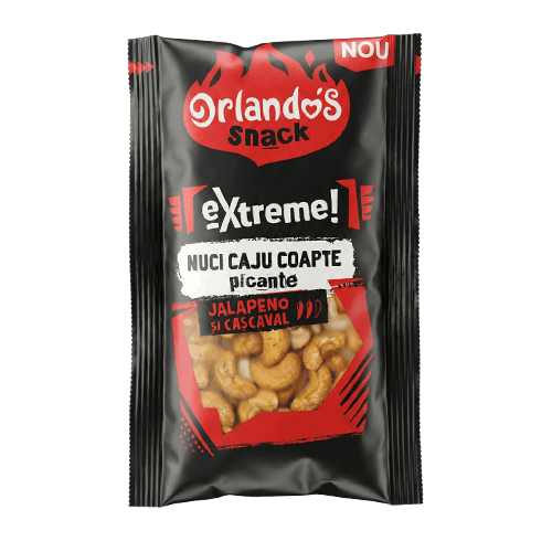 Nuci caju crocante, coapte perfect și îmbogățite cu un mix savuros de jalapeno picant și cașcaval cremos. Combinația surprinzătoare dintre iuțeală și gustul intens de brânză creează un snack plin de personalitate, pentru cei care caută experiențe… EXTREME!