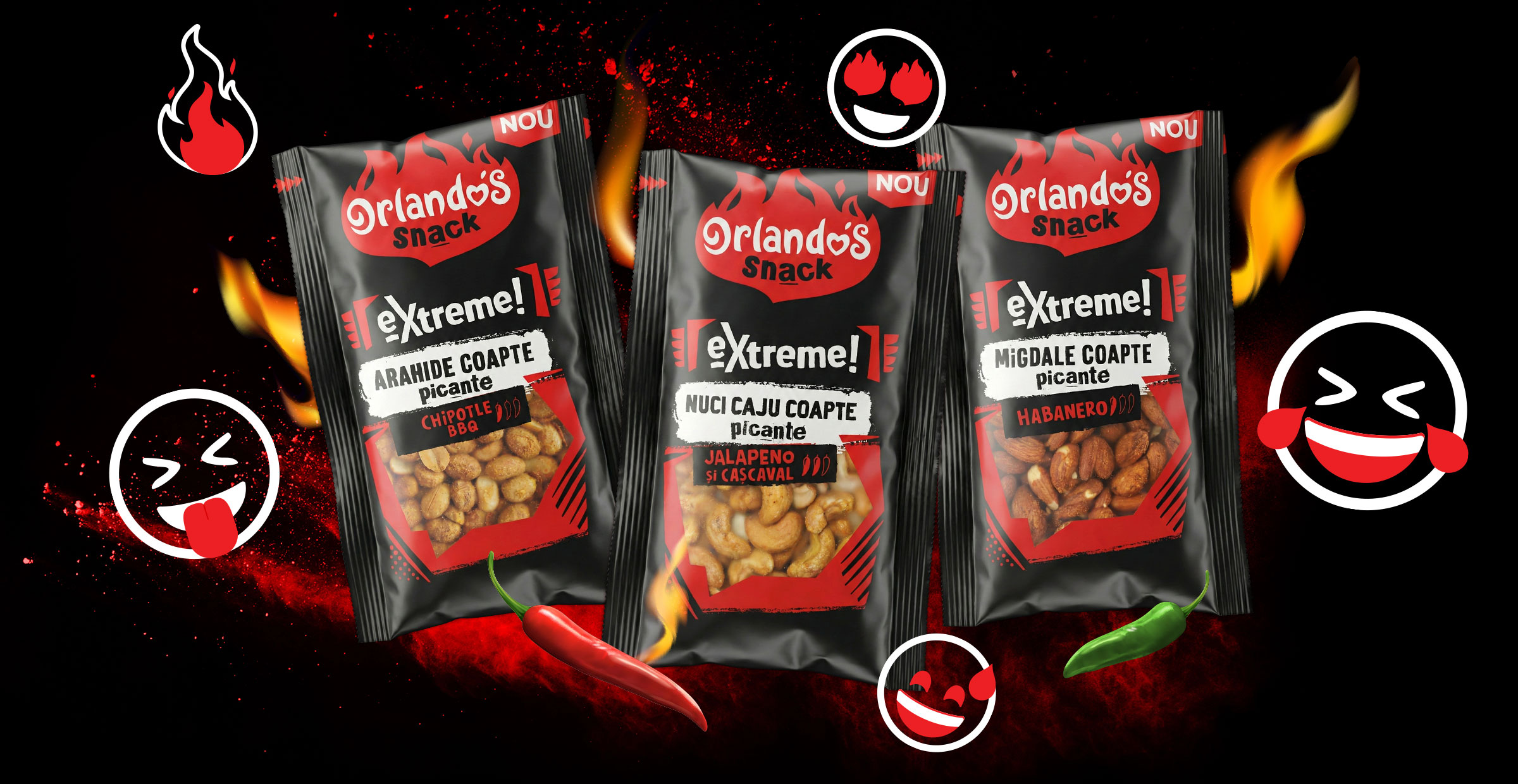 Savurează gustările picante cu 3 niveluri de intensitate!